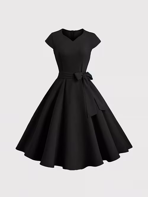 ชุดเดรสยาวสีดำมีดีเทลโบว์ด้านหน้า