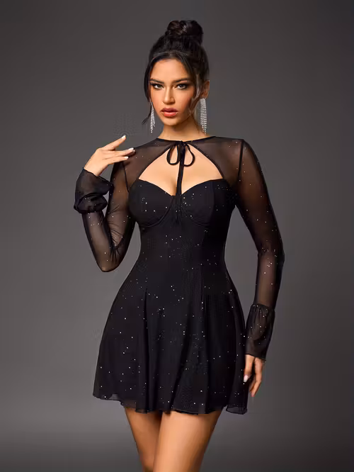ชุดเดรสสีดำซีทู มีลูกเล่นโบว์ มีกลิตเตอร์เล่นเเสง